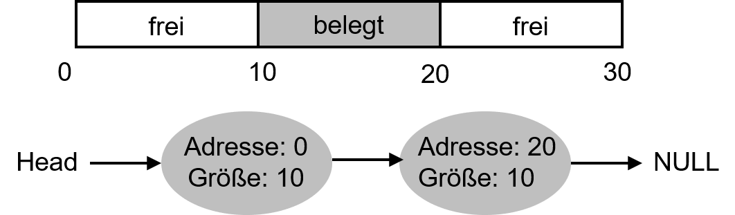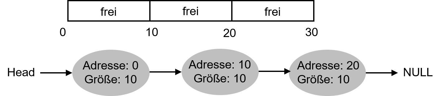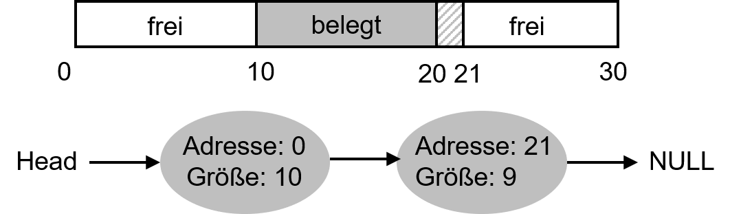 * Eine Datenstruktur zur Verwaltung freier Speicherbereiche ist die sog. Free List